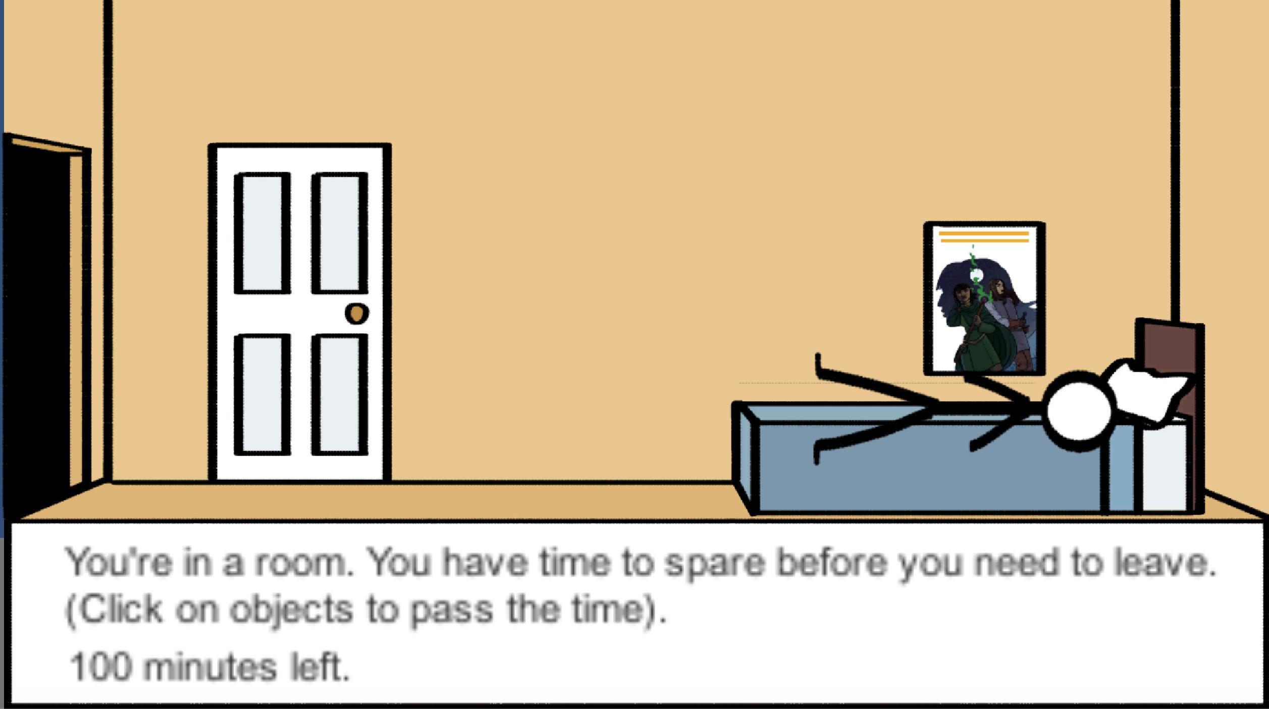 Проведите время, спя, рассматривая случайные вещи и стоя на месте, как в реальной жизни! Нажимайте на объекты, чтобы прочитать их описание, и используйте клавиши со стрелками для перемещения. Решите, будете ли вы наслаждаться своим кратким пребыванием на этом смертном плане.