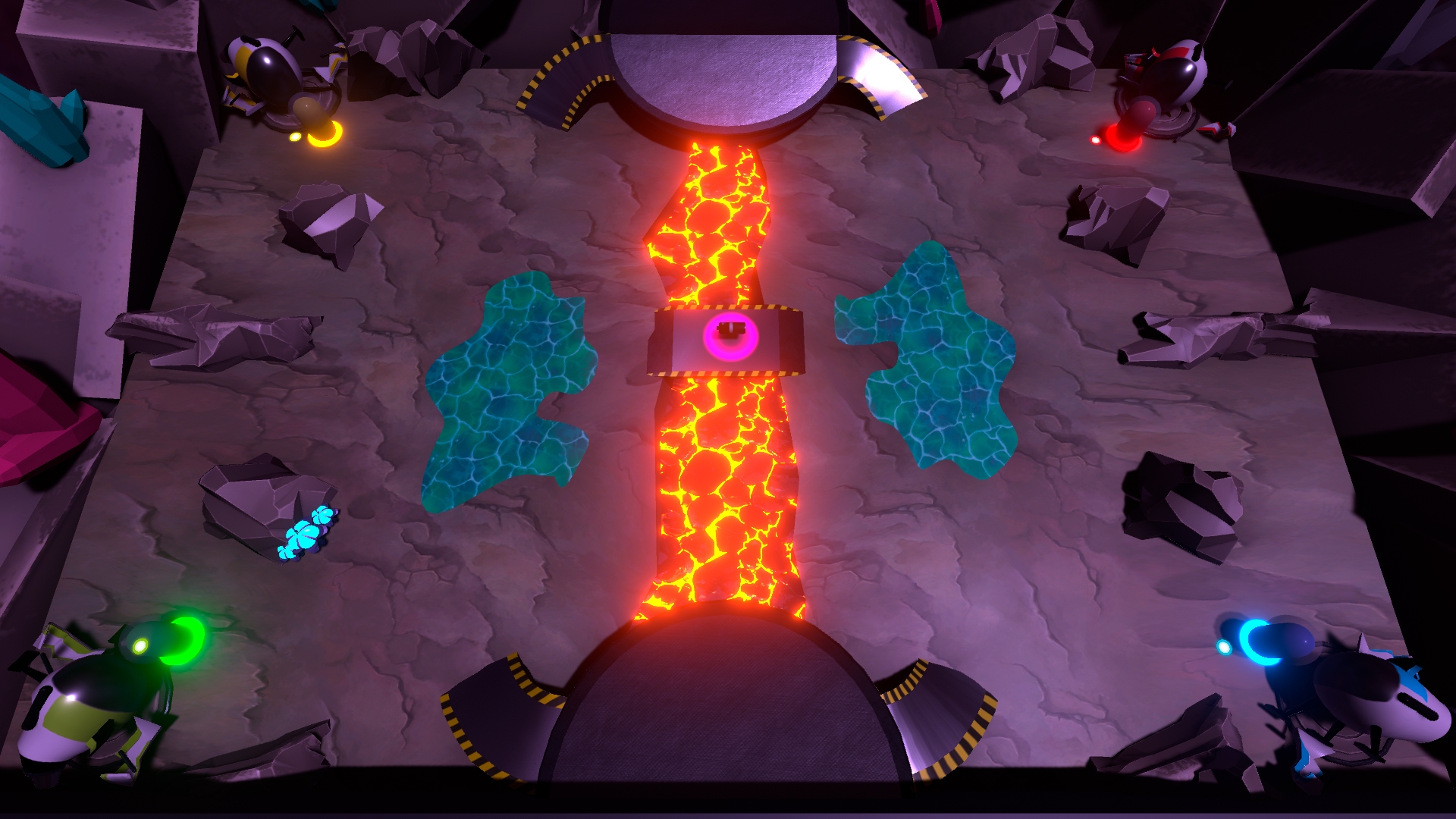 Движение сложное, так как все игроки играют на одной клавиатуре, используя только одну клавишу. У каждого игрока есть указатель, который перемещается вокруг его персонажа, и всякий раз, когда они нажимают свою клавишу, они будут двигаться в направлении, в котором был указатель, когда была нажата клавиша.