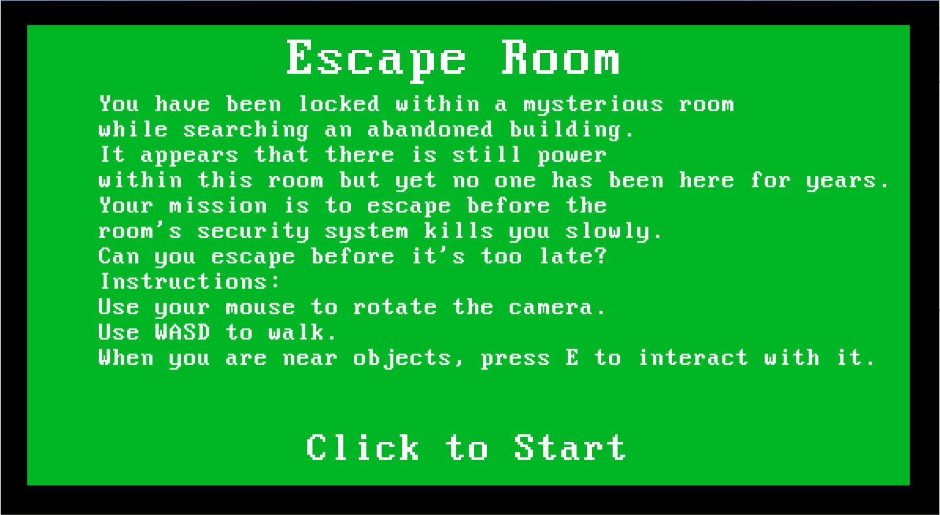 Это моя квест-комната. Вы заперты в секретной лаборатории, которую обнаружили. Вы можете сбежать, но сработал механизм безопасности, и у вас осталось совсем немного времени, прежде чем комната вас убьет.
