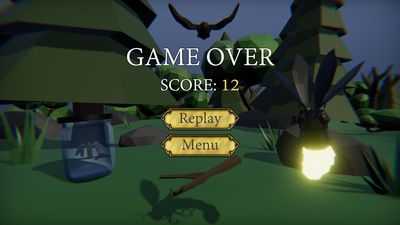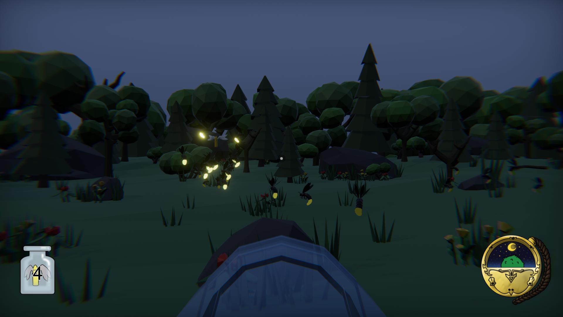 Мы начинаем игру ночью. У нас есть 2 минуты , чтобы поймать как можно больше жуков-пулей до рассвета. Светлячков привлекают жуки-пули, и они помогают нам их ловить. В течение дня наша цель — отстреливать птиц, но имейте в виду, что мы ограничены боеприпасами.