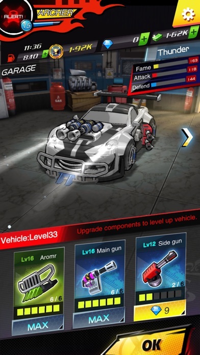 Вы можете расширять свой гараж, улучшать автомобили и открывать вспомогательное оружие самых разных стилей. зарабатывая золотые монеты. Сражайтесь со злой силой один за другим во время гонок и испытайте удовольствие от славы и денег на кончиках ваших пальцев!