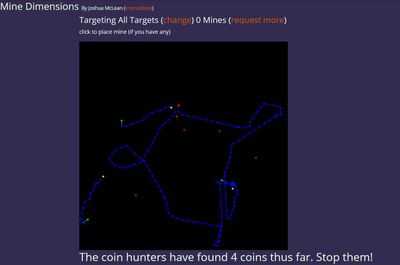 - Перейдите на http://104.237.13.63/asym/ для доступа к Интерфейс размещения шахт и попытайтесь помешать охотникам за монетами собрать слишком много монет.