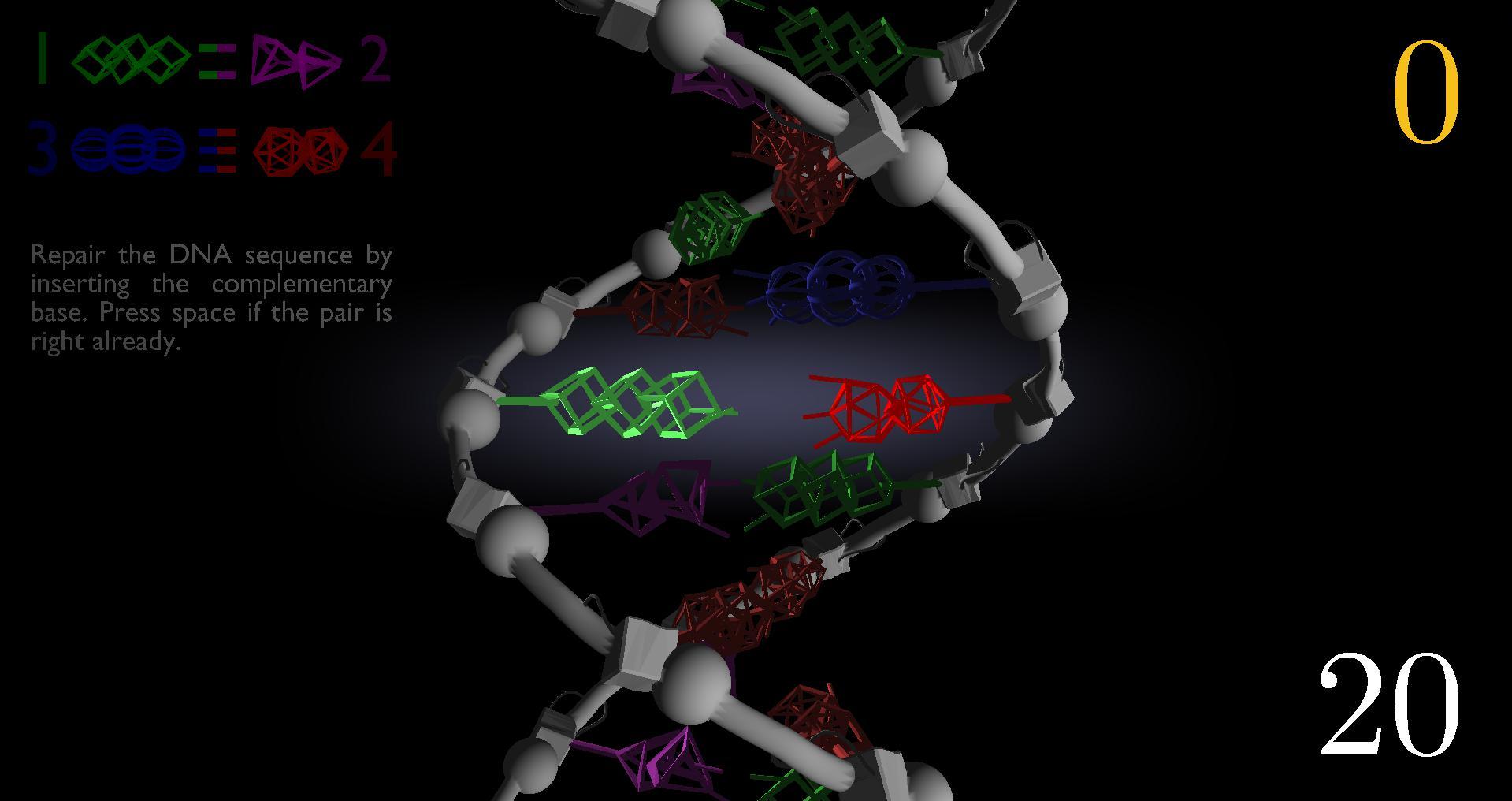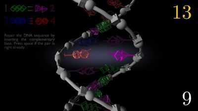 В Helix Repair ваша задача — восстановить поврежденную последовательность ДНК, заменив неправильные азотистые основания на правильные. У вас есть 20 секунд. Сколько азотистых оснований вы сможете восстановить за это время?