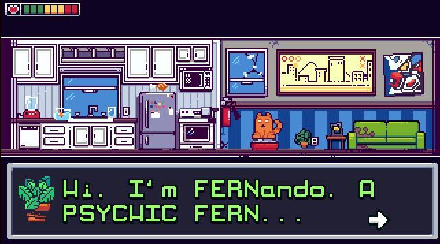 Поплавайте вокруг и узнайте немного о блокноте Фернандо, разрыве Верна с [PERSON] и кормите Верна вещами.
