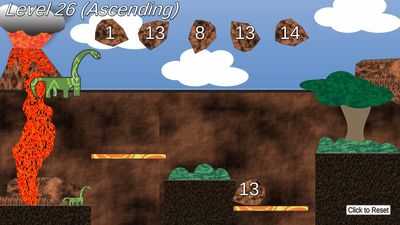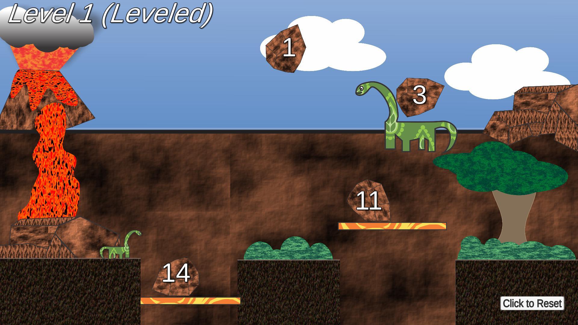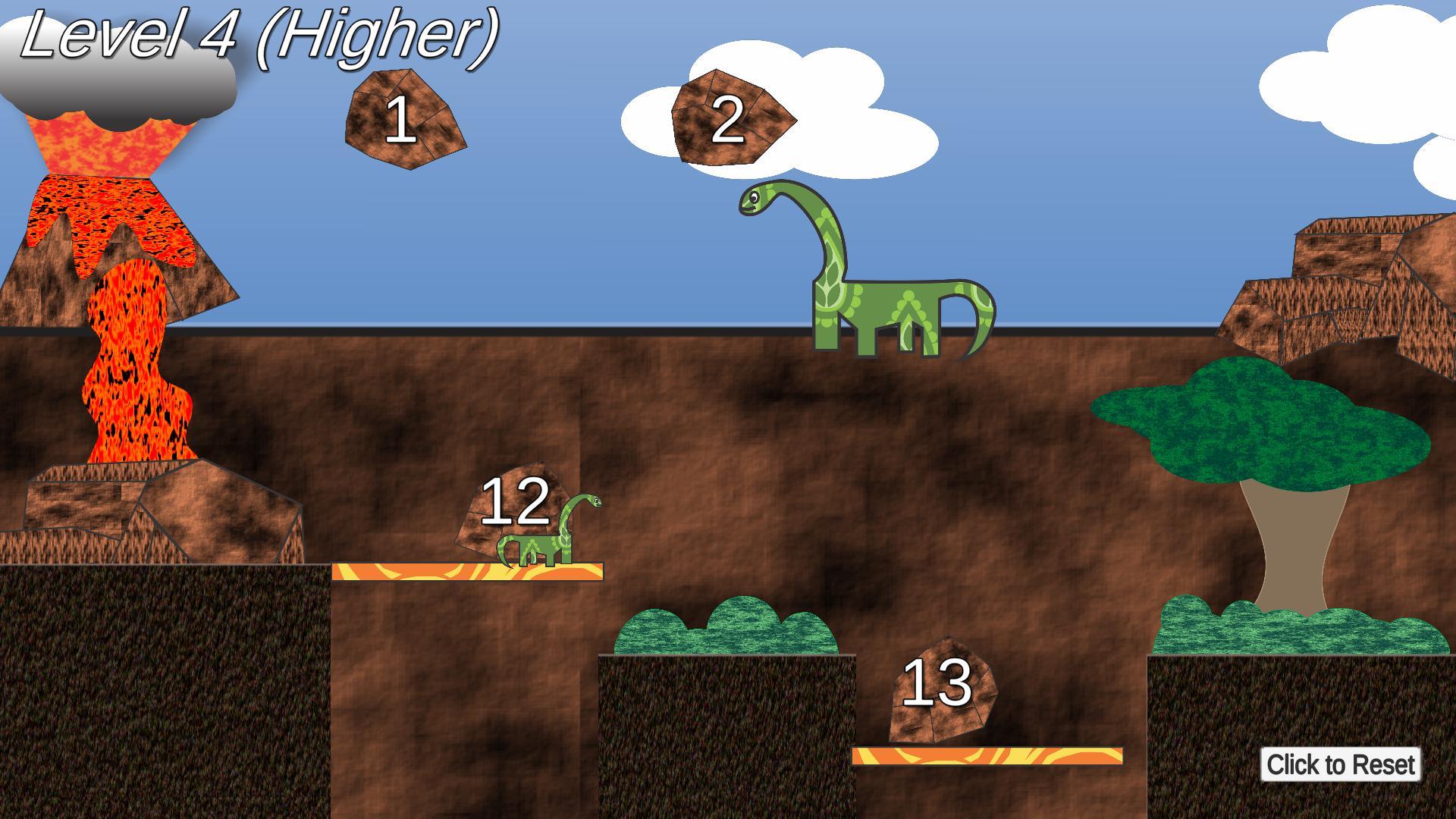 Вам нужно спасти свое потомство от бегущей за вами Лавы! Найдите подходящие камни, чтобы сбалансировать платформы, позволяя Малышу Дино преодолевать щели в земле. Число на камнях показывает, сколько они весят.