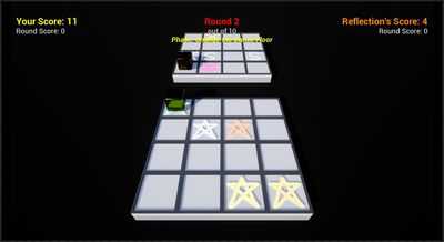 Тогда ваша очередь. Вы можете двигаться столько же раз, сколько и ваше отражение, но будьте осторожны! Если вы не отразите положение своего отражения к концу этого этапа, ваши набранные очки за этот раунд будут уменьшены вдвое!