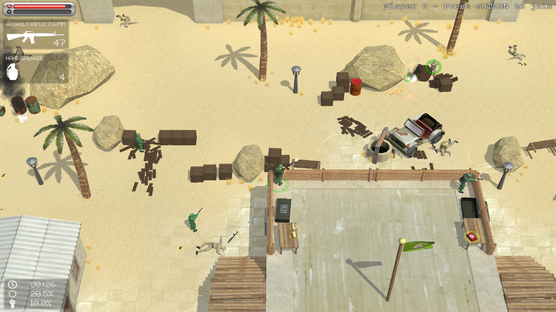 Пустыня может быть жестокой, жаркой и смертоносной. Но так может Альберт Морт! Под палящим солнцем пустыни вам нужно поддержать свои войска, чтобы защитить свою базу, завоевать новые, обезопасить районы и в конечном итоге победить плохого парня, также известного как наркобарон Бластер. Есть также некоторые незавершенные дела в тени ночи, для некоторых специальных действий коммандос.Особенности