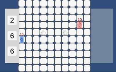 - Атака — вы атакуете соседнего врага на количество урона, равное числу кубика.