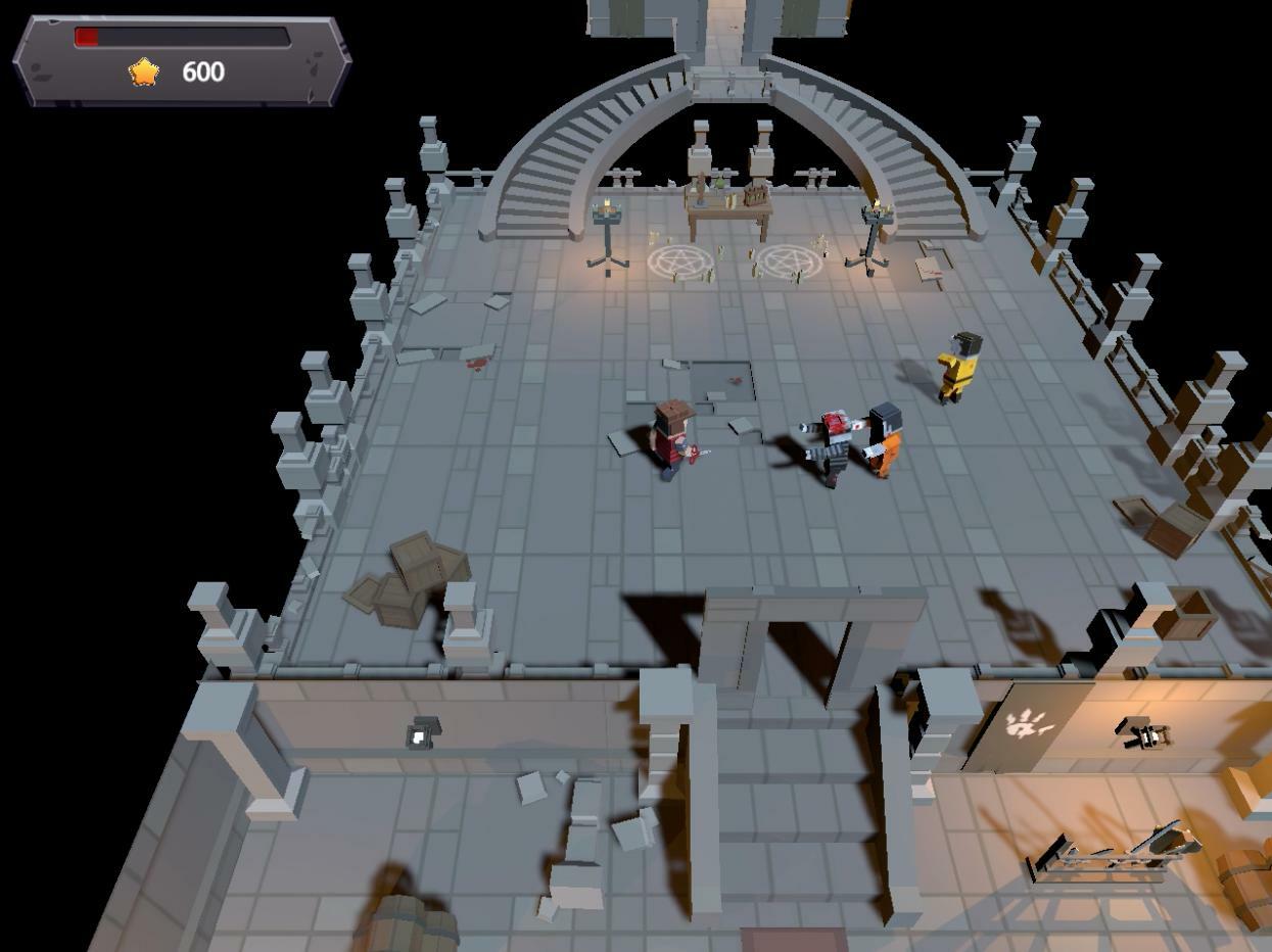 Поскольку тема джема была «Камень-ножницы-бумага», игра была разработана для реализации этих функций в качестве способностей игрока в 3D-игре с видом сверху.