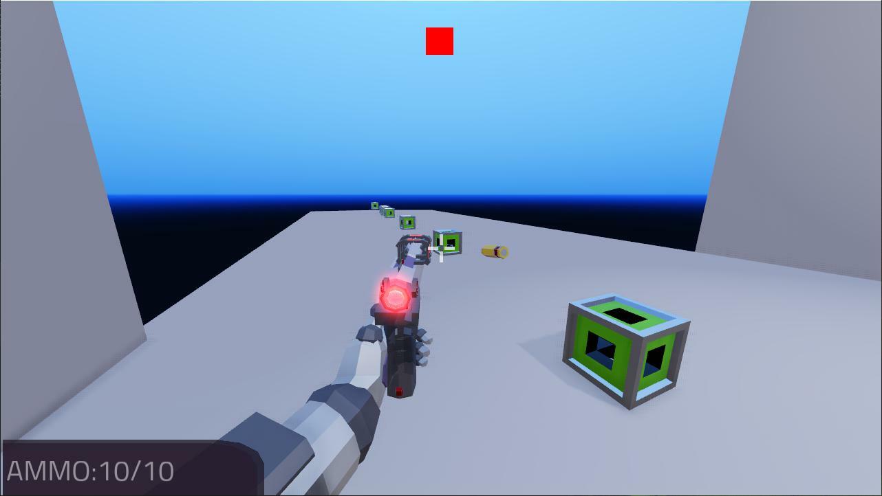 Коробки будут двигаться к вам по прямой. Вам нужно стрелять в них, но стрелять можно только тогда, когда квадрат в верхней части экрана станет зеленым. Этот квадрат через равные промежутки времени становится зеленым, поэтому постарайтесь войти в этот ритм стрельбы. Удачи!