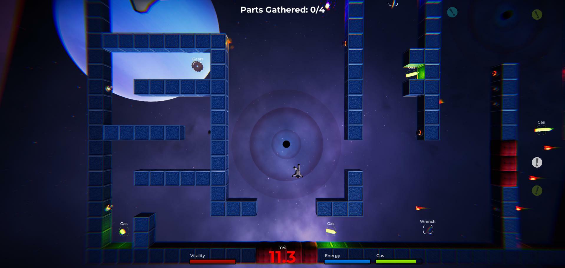 Собирайте детали на сложных уровнях с нулевой гравитацией, до краев наполненных опасными ловушками.