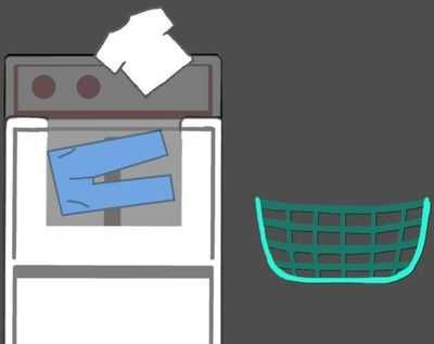 У всех стиральных машин нет дверец, и одежда выгружается до того, как ее постирают! Используйте корзину для белья, чтобы вернуть одежду в стиральную машину, прежде чем истечет время!
