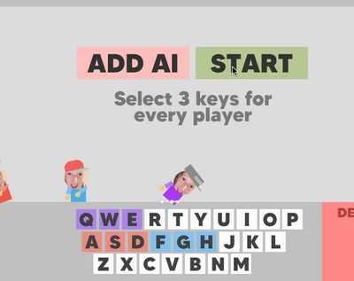 Выберите 3 клавиши, нажав любую клавишу на клавиатуре. Добавьте ИИ, если хотите. Вы можете управлять своим персонажем с помощью клавиш вашего цвета.
