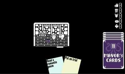В этой стране есть священная книга, созданная богами, которая указывает людям правила, которым они не должны препятствовать. В главе 2456 упоминается небольшой участок земли, где люди НИКОГДА не будут иметь права селиться под страхом наказания самих богов. Вы, мэр, определенно не читали эту главу, потому что решили основать там свою деревню. . . Какая жалость! Боги были в ярости и поэтому прокляли вас: вы, любители играть с огнем, Боги дали вам прекрасную колоду карт. На этих картах написаны всевозможные возможные реакции, иногда очень приятные, иногда одиозные. Каждый раз, когда вы взаимодействуете с кем-то, вам придется брать две карты и выбирать ту, которую вы хотите.