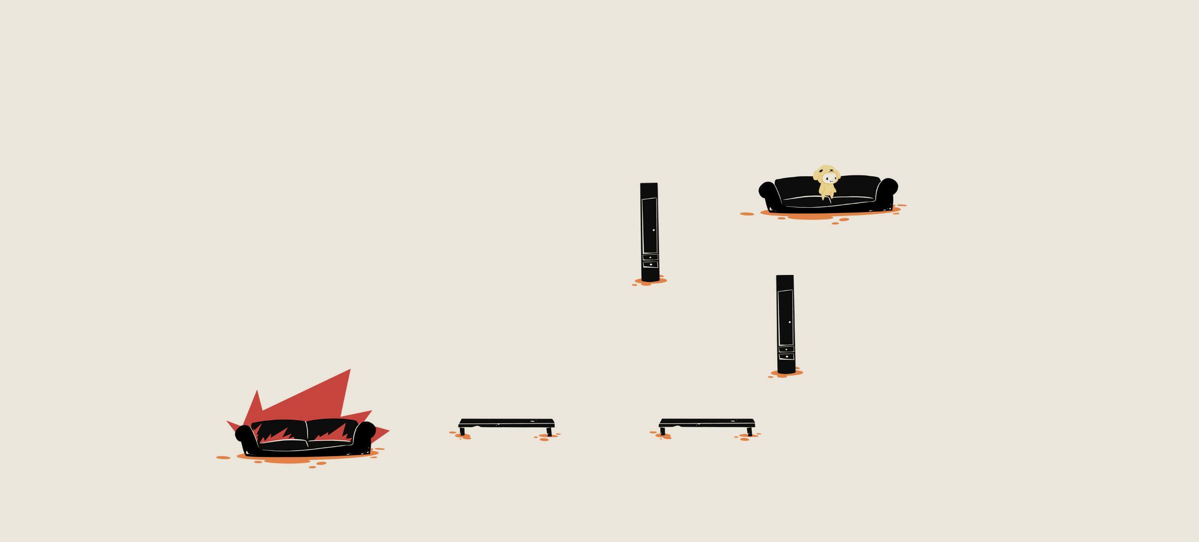 Игрок должен прыгать с одного дивана на другой, уклоняясь от препятствий. Вы можете создавать платформы, которые помогут вам добраться до следующего пункта назначения