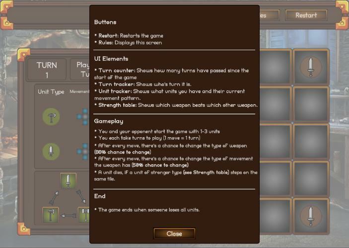 Игра вдохновлена другими стратегиями/настольными играми, такими как GO, Chess, Connect 4, но с изюминкой. Каждый раз, когда вы двигаетесь, характеристики вашего юнита рандомизируются. Я попытался дать игроку достаточно возможностей для планирования наперед, но также добавил немного старого доброго ГСЧ, чтобы оживить ситуацию и вывести ситуацию из-под контроля.