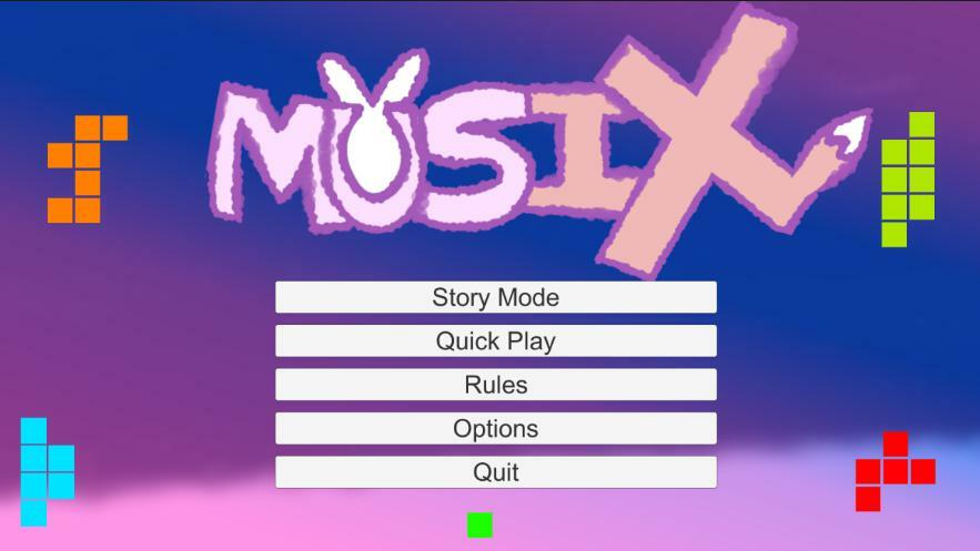 Musix – это другой тип ритм-игры, в которой блоки перемещаются по экрану слева направо в течение 2 часов в зависимости от песни. В отличие от Тетриса, где игра продолжается до тех пор, пока вы не проиграете, цель каждого уровня — выжить, пока игрок не дойдет до конца песни.