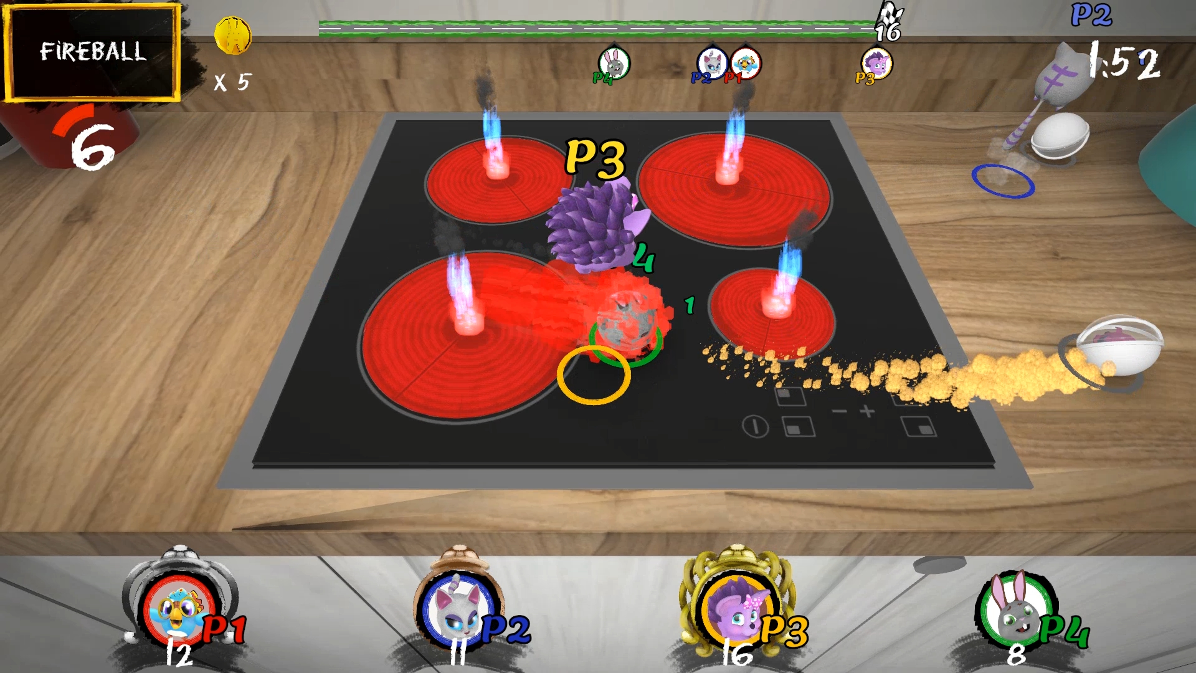 FuzzBall поставляется с 3 различными режимами игры, поддерживающими 1–4 игрока для локальной многопользовательской игры на диване: