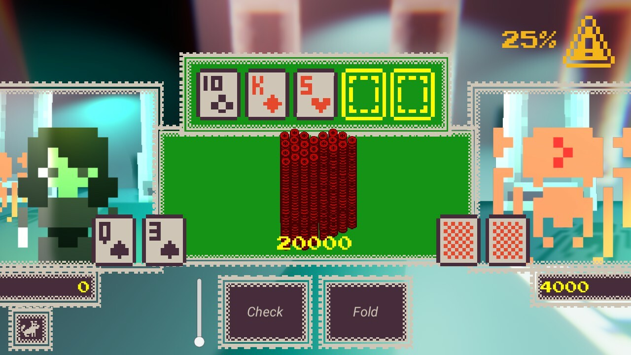 Битвы в покере аналогичны стандартному техасскому холдему, но с одной особенностью: монстры в вашей группе могут жульничать, чтобы помочь вам во время игры. Чтобы активировать эти читы в свой ход, просто нажмите на значок члена группы в левом нижнем углу экрана. Когда вы наводите указатель мыши на значок, отображается всплывающая подсказка, показывающая способность члена вашей группы и сколько «% предупреждения безопасности» будет стоить использование этой способности. Текущий «% оповещения безопасности» можно увидеть в свой ход в правом верхнем углу экрана, обозначенном желтым знаком «!». Если способность приведет к тому, что уровень оповещения превысит 100 %, вы не сможете использовать эту способность.