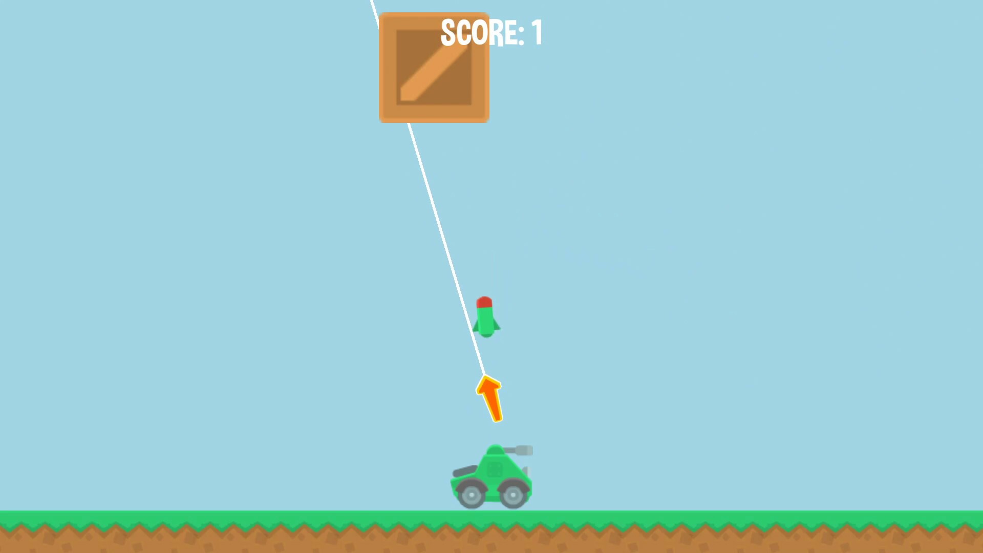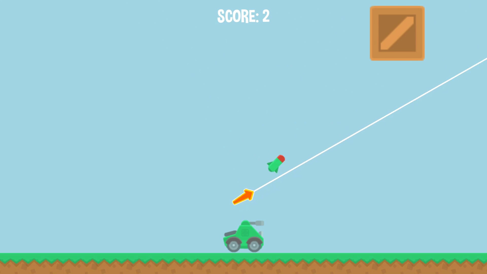 Мы уничтожим коробки, случайно появляющиеся вокруг вас, с помощью ракеты, которую выпустим в направлении стрелки на нашем танке.