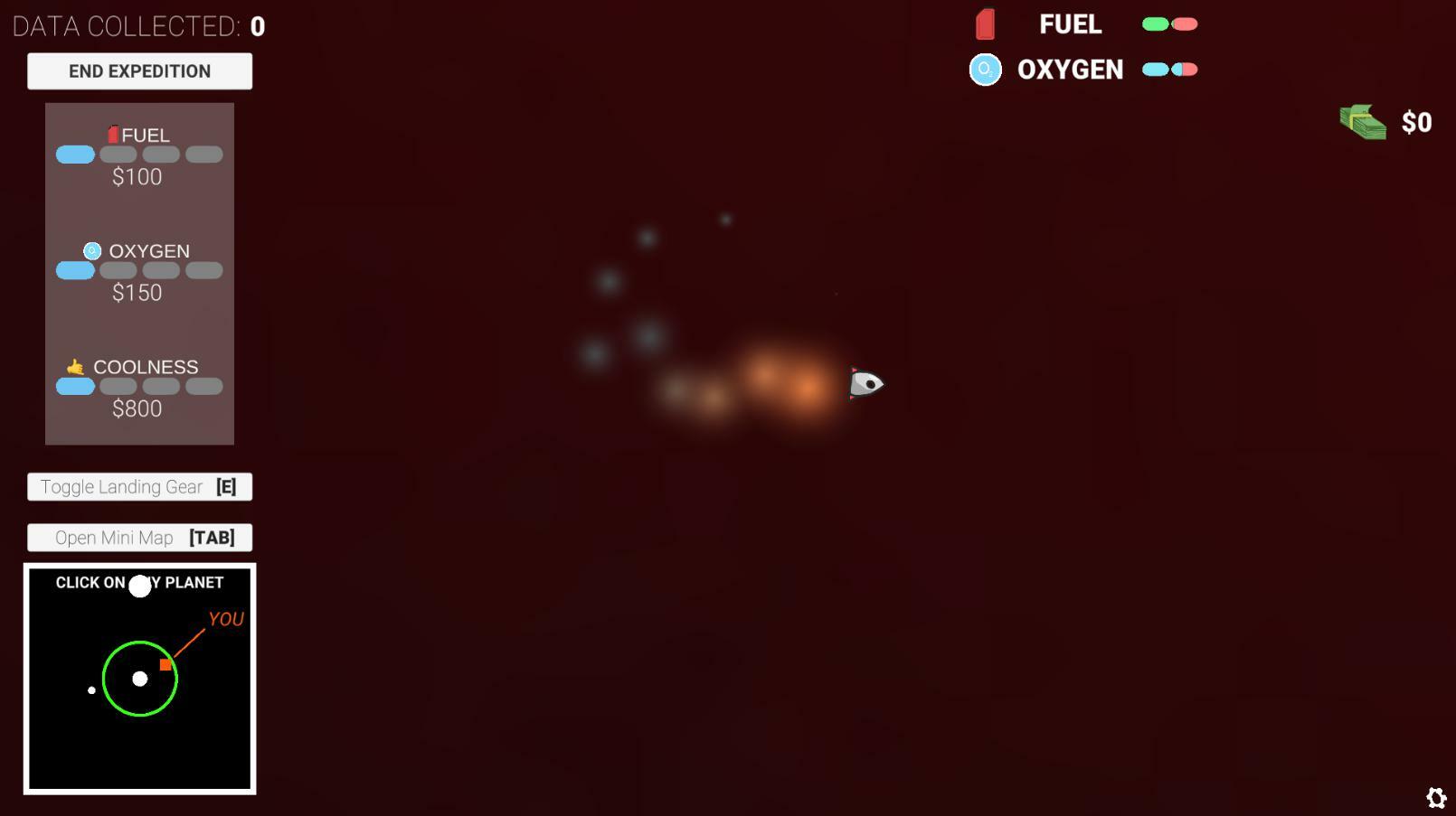 КУРСОР МЫШИ наводит на цель и ЩЕЛЧИТ ПРАВОЙ кнопкой мыши, чтобы ускорить. Неоднократные полеты лицом вперед к планетам ни к чему не приведут, аккуратно приземлитесь на шасси.