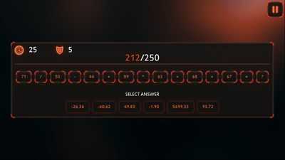 Вам дается задача и 6 возможных ответов на нее. Вы должны выбрать правильный из списка. Ничего страшного, если вы совершите ошибку, так как игра предоставляет вам «право на ошибку» (X5).