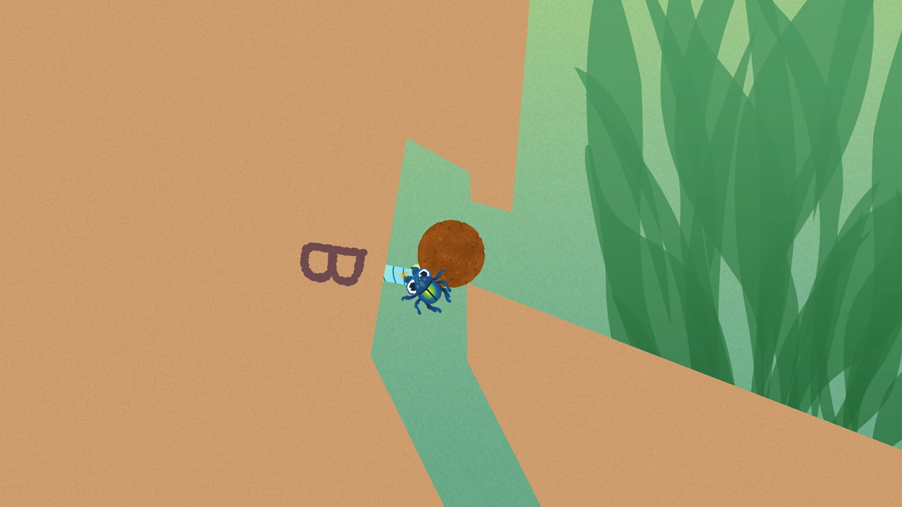 Вдохновленный древнегреческим мифом, наш Сизиф должен нести свой навозный комок на вершину горы. Но на этот раз ему помогли друзья, чтобы совершить этот подвиг.