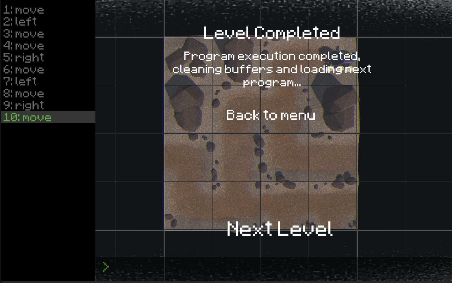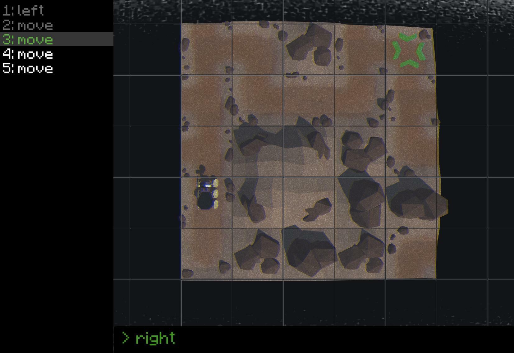 Вы управляете роботом-исследователем, застрявшим на далекой планете. К сожалению, его код поврежден, и он сломается, как только у него закончатся команды, поэтому ваша задача состоит в том, чтобы как можно быстрее вводить навигационные команды в консоль.