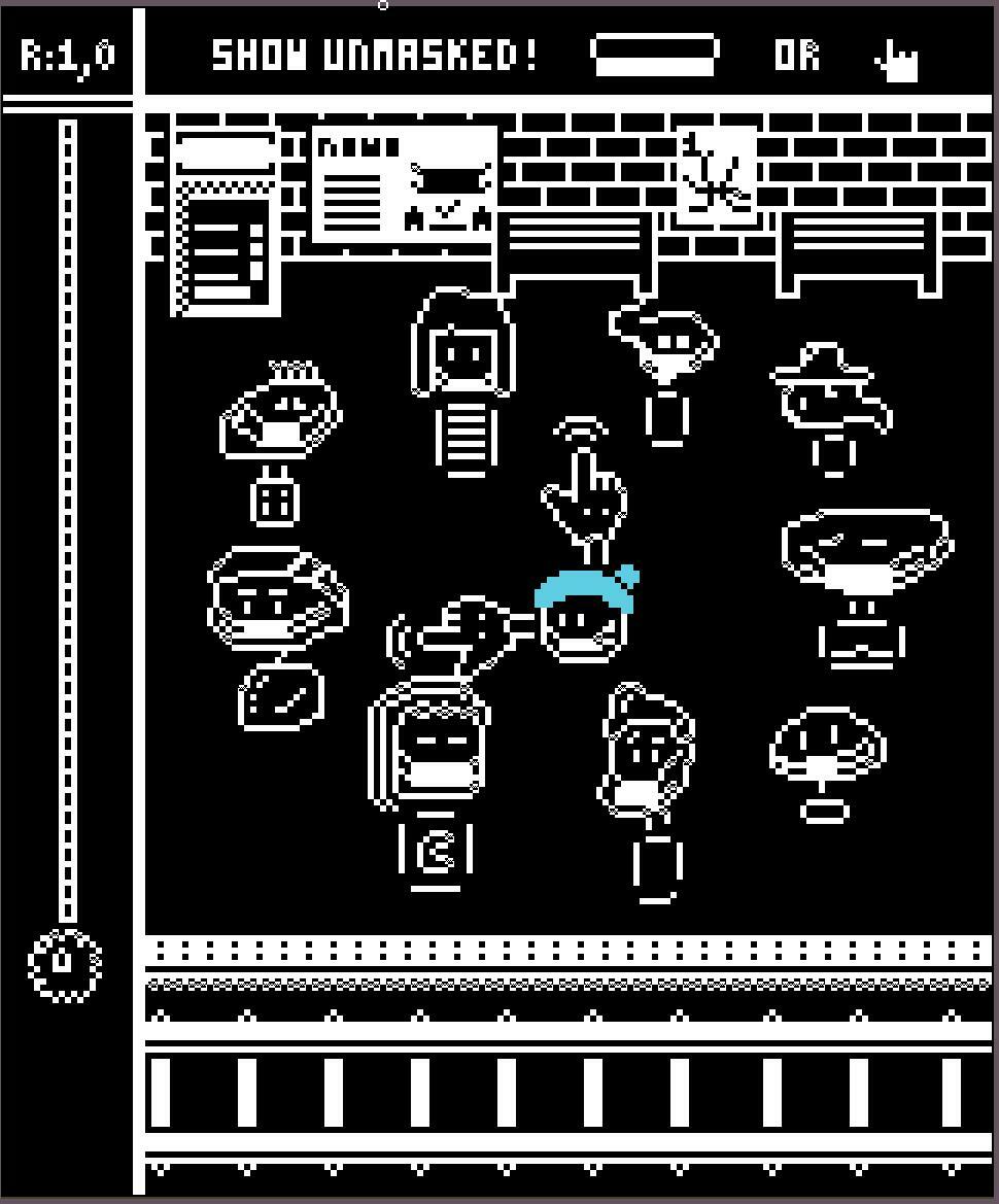 Пандемия приближается! У нас есть набор правил, позволяющих выжить, но... не все им следуют. Вы играете за Ребенка-Маски, человека, который делает все возможное, чтобы изменить ситуацию. Проходите ряд сценариев, основанных на реальных жизненных ситуациях , и делайте правильные вещи, чтобы снизить Rt!