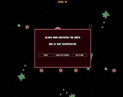 Левая кнопка мыши запускает ракеты, убивающие пришельцев.