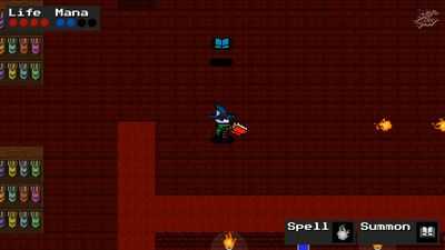 Исследуйте подземелье и доберитесь до выходной двери, чтобы перейти в следующую область. Вы можете собирать заклинания атаки и призыва, зелья здоровья и маны из павших врагов и сундуков с сокровищами, все выпадения случайны, некоторые враги не могут выпадать определенные предметы, все типы предметов могут выпадать только из сундука с сокровищами.