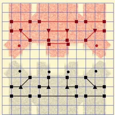 Если точка не имеет соединений (обведена кружком), тогда она либо отталкивается, либо притягивается каждой линией, с которой она сталкивается.