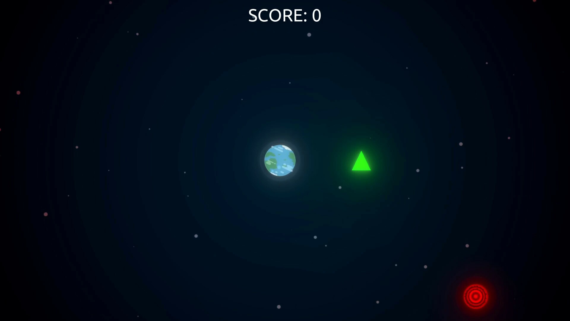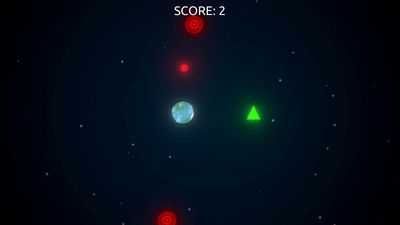Наш крошечный зеленый треугольник пытается уничтожить врагов в форме красных кругов, которые приближаются к нашему миру, стреляя в них.