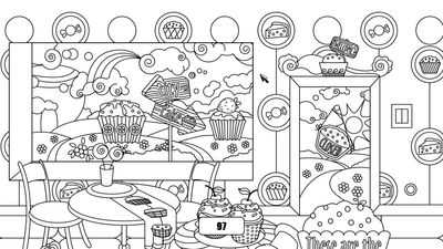 Игра в жанре «поиск предметов» в обстановке мультяшного кафе.