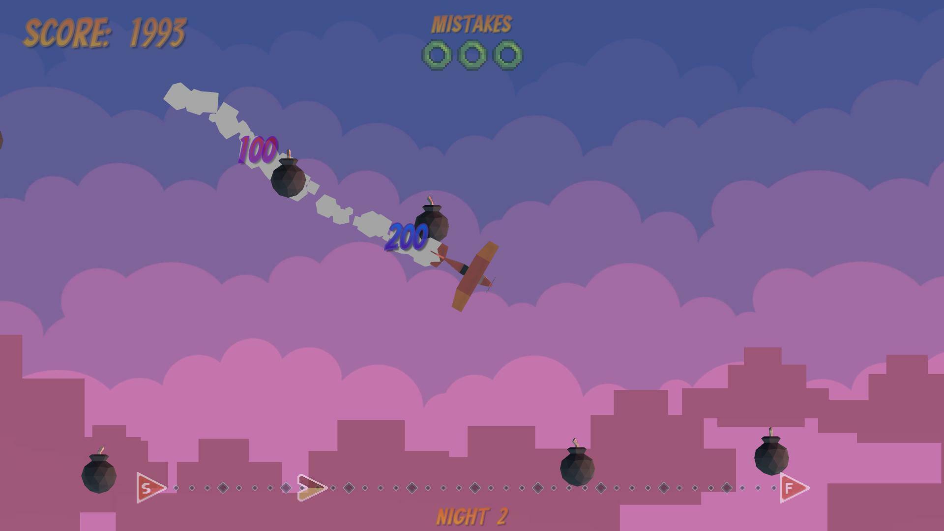 Ведите свой самолет до конца каждого маршрута и уклоняйтесь от любых препятствий на пути. В этой игре можно управлять только левой и правой кнопками мыши. Щелчок левой кнопкой мыши поднимет и опустит ваш самолет, а щелчок правой кнопкой мыши позволит вам выполнить бочку. Бросок бочки позволит вам пройти через препятствия невредимым, и вы получите за это бонусные очки. Чем больше препятствий вы избежите за один бросок бочки, тем больше будет награда. Посмотрите, какого высокого балла вы сможете достичь!