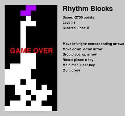 Примечание: хотя это моя работа, она далека от безупречной игры. Из-за ограничений в библиотеке pygame мне не удалось синхронизировать музыку с игровым процессом 1:1, и, вероятно, возникнет критическая задержка. С учетом вышесказанного, вполне возможно, что игра пройдет для вас гладко. Если это так, отлично! Если нет, то извините и надеюсь, что когда-нибудь в будущем у меня появится мотивация вернуться к этому проекту и найти решение.