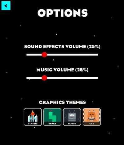 Включает в себя различные графические темы с иллюстрациями, основанными на некоторых моих других заданиях в университете, а также стандартное оформление в стиле Galaxian.