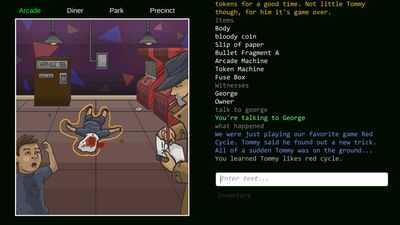 Еще одна игра RanDome. Темой для этого был «Рикошет», поэтому мы создали персонажа по имени Рик О'Ши, детектива, который должен выяснить, как за одну ночь могло произойти 3 убийства, и только в одном из них была пуля.