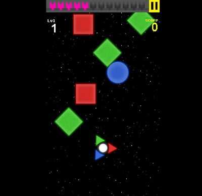 Путешествуйте по космосу и набирайте как можно больше очков, сопоставляя цвет точек GeoShifter (персонажа игрока) с цветом Geos (геометрических фигур, падающих с верхней части экрана).