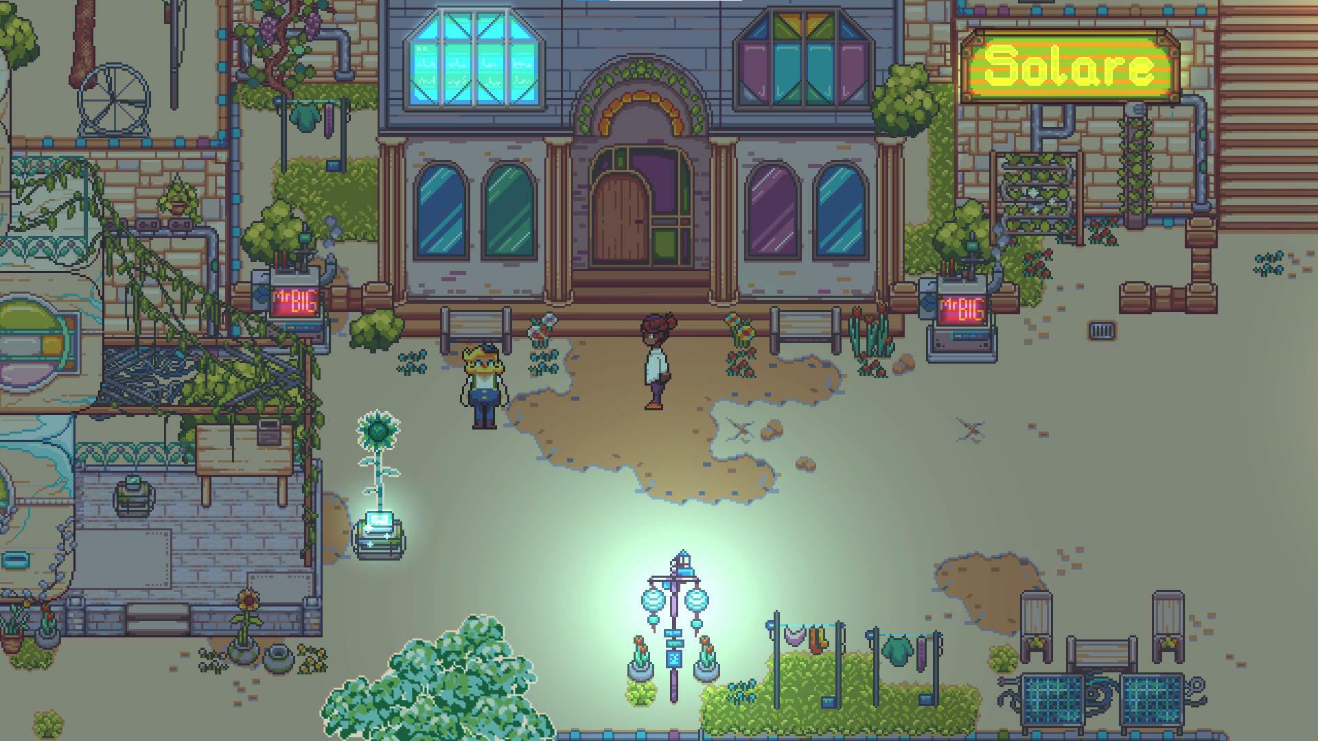 Solare – это повествовательное приключение в жанре солярпанк в стиле пиксель-арт с видом сверху. Игрок пытается спасти город в истекающее время. В основе игры лежит механика времени и энергии с увлекательной системой повествования.