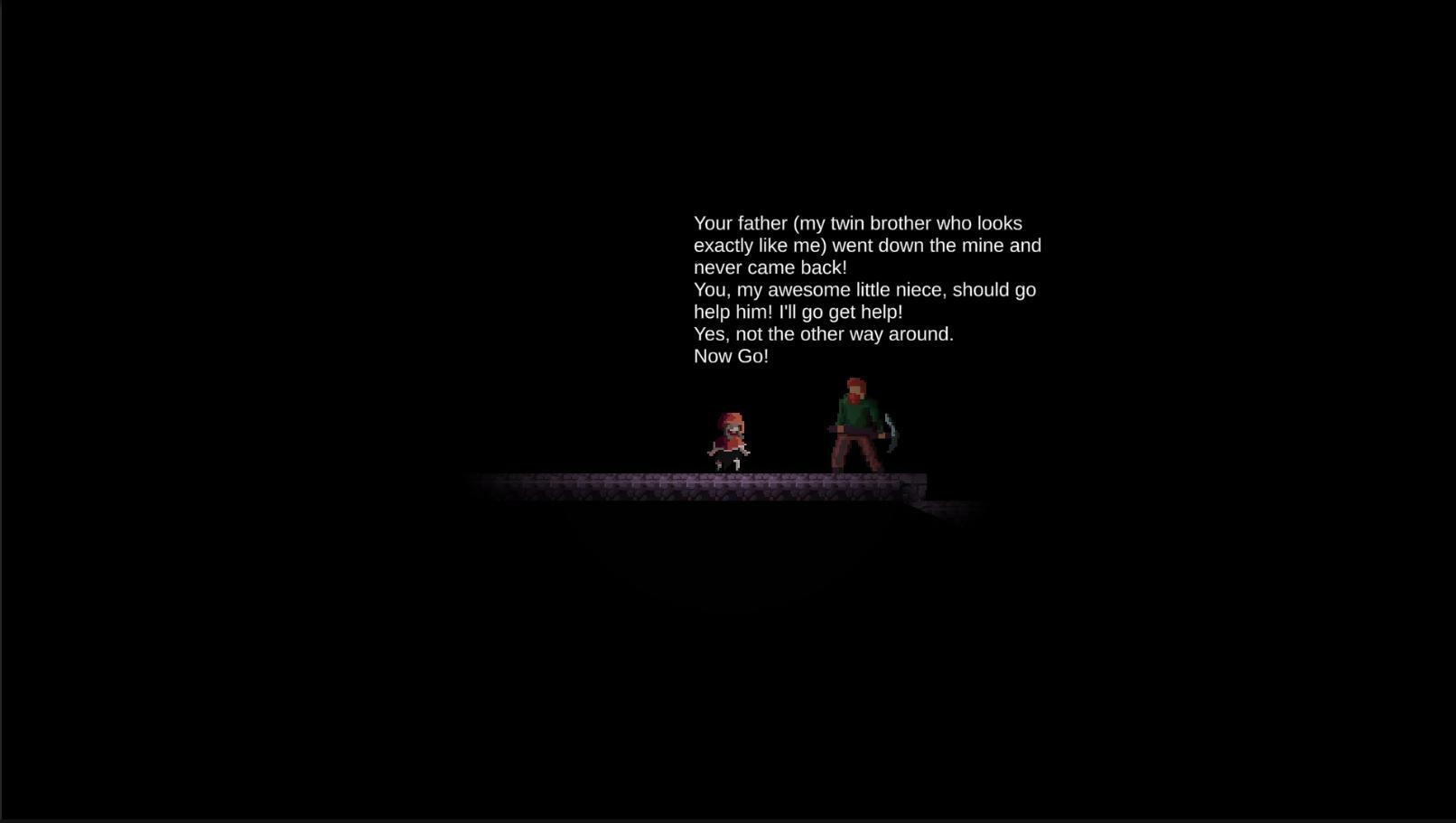 В углу шахты было обнаружено что-то странное, что-то глубокое и наполненное монстрами. Ваш отец, один из шахтеров, решил продолжить разведку и до сих пор не вернулся. К счастью, ты, его дочь, владеешь топором и кинжалом, прыгаешь на 20 футов и задира маленькой девочки. Вы отправляетесь в шахту и в туннели за ее пределами, чтобы найти его.
