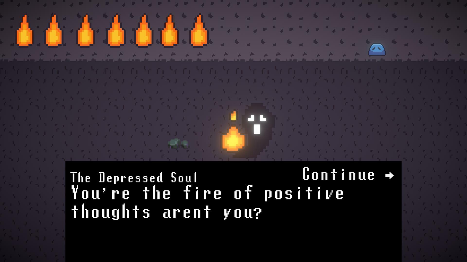Это игра, в которой вы являетесь пламенем позитивных мыслей и должны сражаться с множеством врагов. Эта игра была создана для геймджема Blackthronprod. Эта игра была во многом вдохновлена огнём веры.