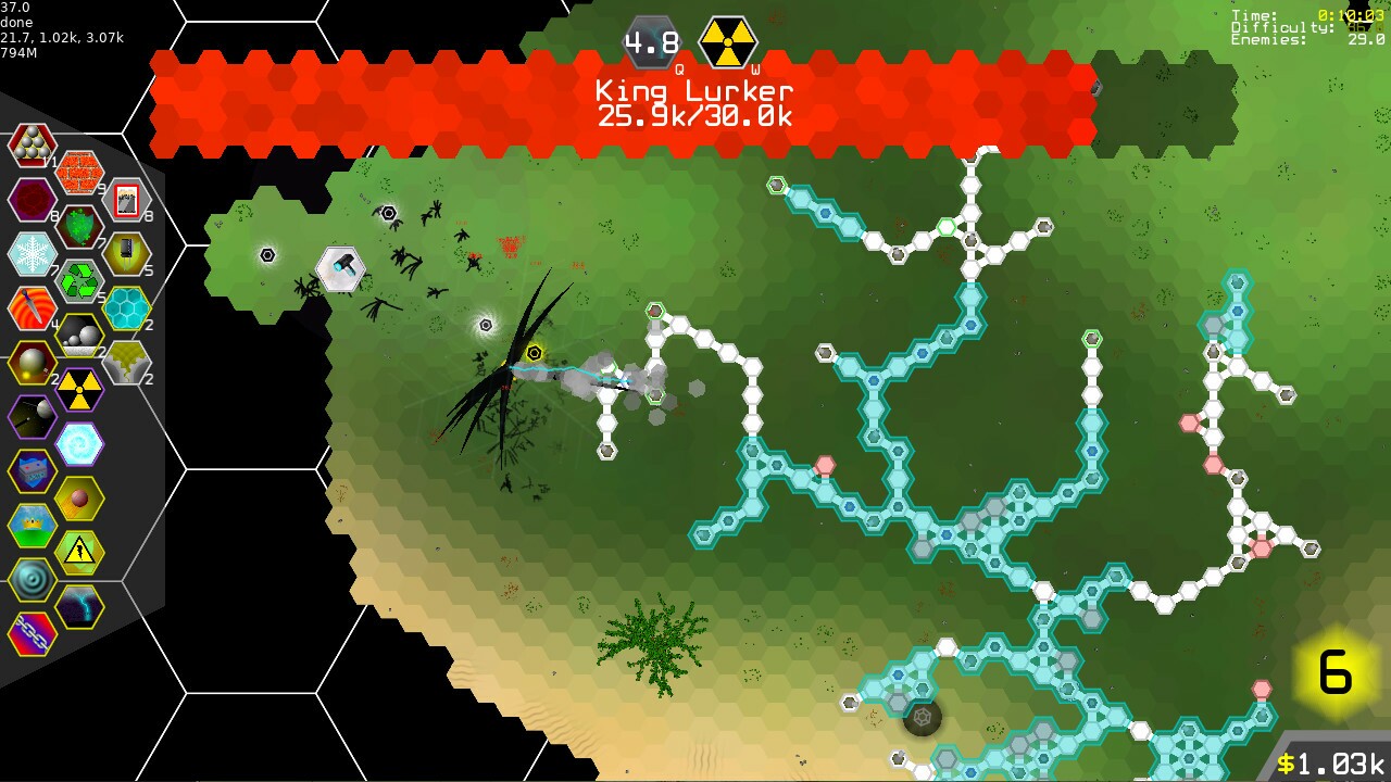 Приближается существо, стремящееся уничтожить ваш шестиугольник. Постройте башню, защитите ее, умножьте ее.