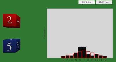 Моделирование повторяющихся бросков одной или двух игральных костей по методу Монте-Карло.