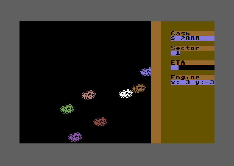 Идея создания двигателя на астероиде принадлежит k240, одной из лучших игр для Amiga, которые я знаю. Я планировал добавить эту идею в Swarm 16k, игру RTS C64, которую я написал в 2019 году для конкурса RGCD 16kb Cartridge.n, но на тот момент оно не умещалось в 16 тысяч.