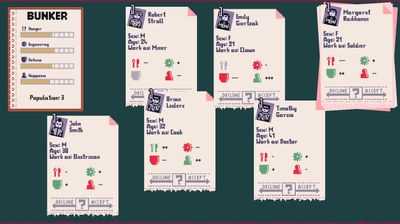 Тема джема была: Вместе сильнее, поэтому нашей первой идеей была игра, похожая на «Портал», с маленьким ребенком и его собакой. Он мог управлять собакой, чтобы решать головоломки и т. д., но игра было слишком амбициозным и слишком сложным, чтобы сделать его за неделю, поэтому мы начали искать другую идею. Когда я был в церкви, мне пришла в голову эта идея. Как это связано с темой варенья? Людям в бункере приходится работать вместе, чтобы выжить дольше. Например, повар может приготовить еду, но при нападении бандитов ему нужен солдат для защиты.