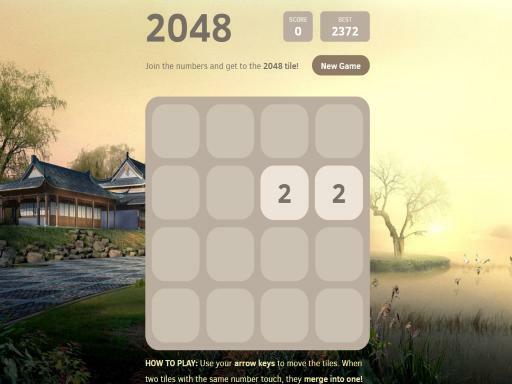 В 2048 часто играют на простой сетке 4×4 с пронумерованными плитками, которые скользят, когда игрок перемещает их с помощью четырех клавиш со стрелками. Каждый ход новая плитка случайным образом появляется на пустом месте доски со значением 2 или 4. Плитки скользят как можно дальше в выбранном направлении, пока их не остановит либо другая плитка, либо край сетки. Если две плитки с одинаковым номером столкнутся во время движения, они объединятся в плитку с общей стоимостью двух плиток, которые столкнулись. Полученная плитка не может снова слиться с другой плиткой за один и тот же ход. Плитки с более высокими баллами излучают мягкое свечение, а максимально возможная плитка — 131 072.