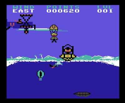 В Umi Paratrooper вы должны выпрыгнуть из самолета в самый подходящий момент с помощью кнопки огня джойстика, чтобы приземлиться на передвижную платформу, которая находится в реке. Вы можете двигаться справа налево или нажимать вверх, чтобы двигаться медленнее, или вниз, чтобы идти быстрее и избегать всех врагов на экране.
