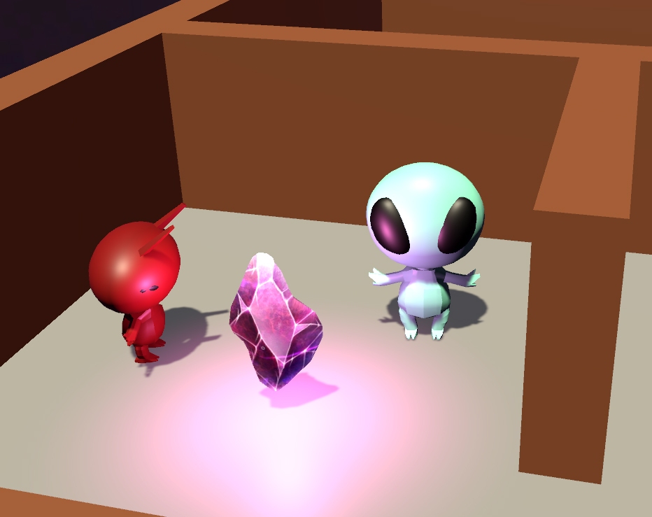 но есть одна особенность: у зеленого инопланетянина есть зрение, а у красного он слеп, поэтому только красный инопланетянин может собирать ключи, а зеленый инопланетянин может перемещаться по нему.