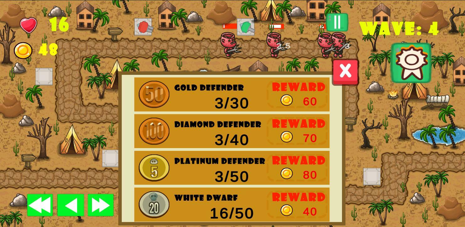 Враги приходят в 60 волнах. Каждая новая волна сильнее предыдущей. Защитите все Волны, чтобы одержать победу.